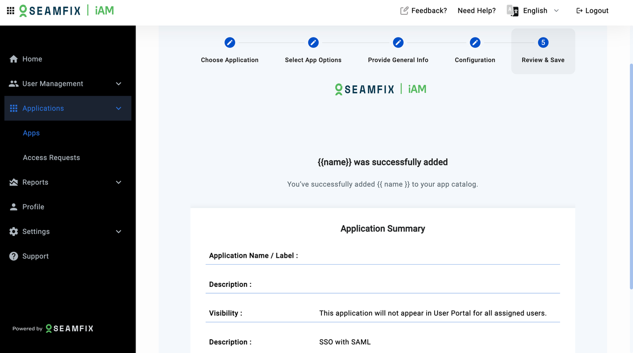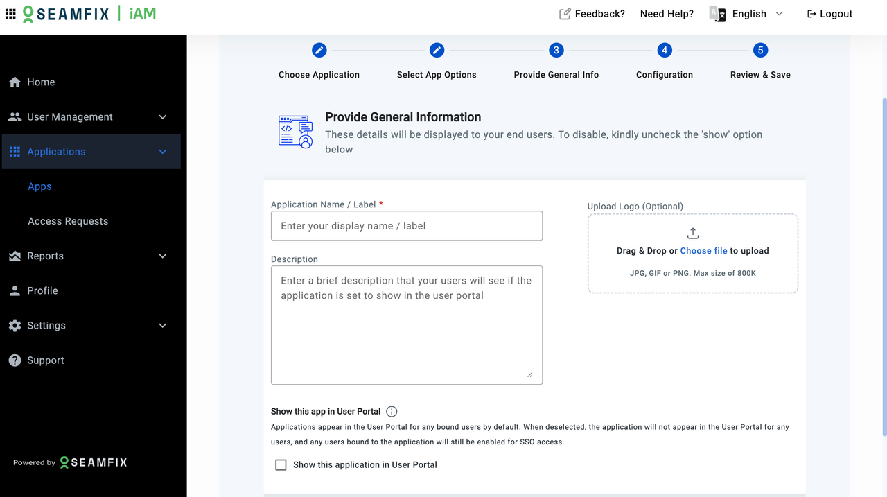 - Define access control policies: Specify which user groups or individual users can access the application.