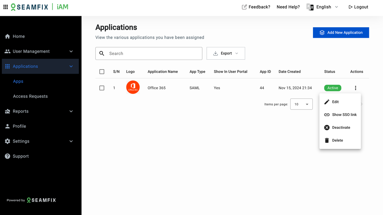 - Monitor and Manage the Application: After adding the application, you can monitor user access, modify settings, or remove the application from the Application module on the dashboard.