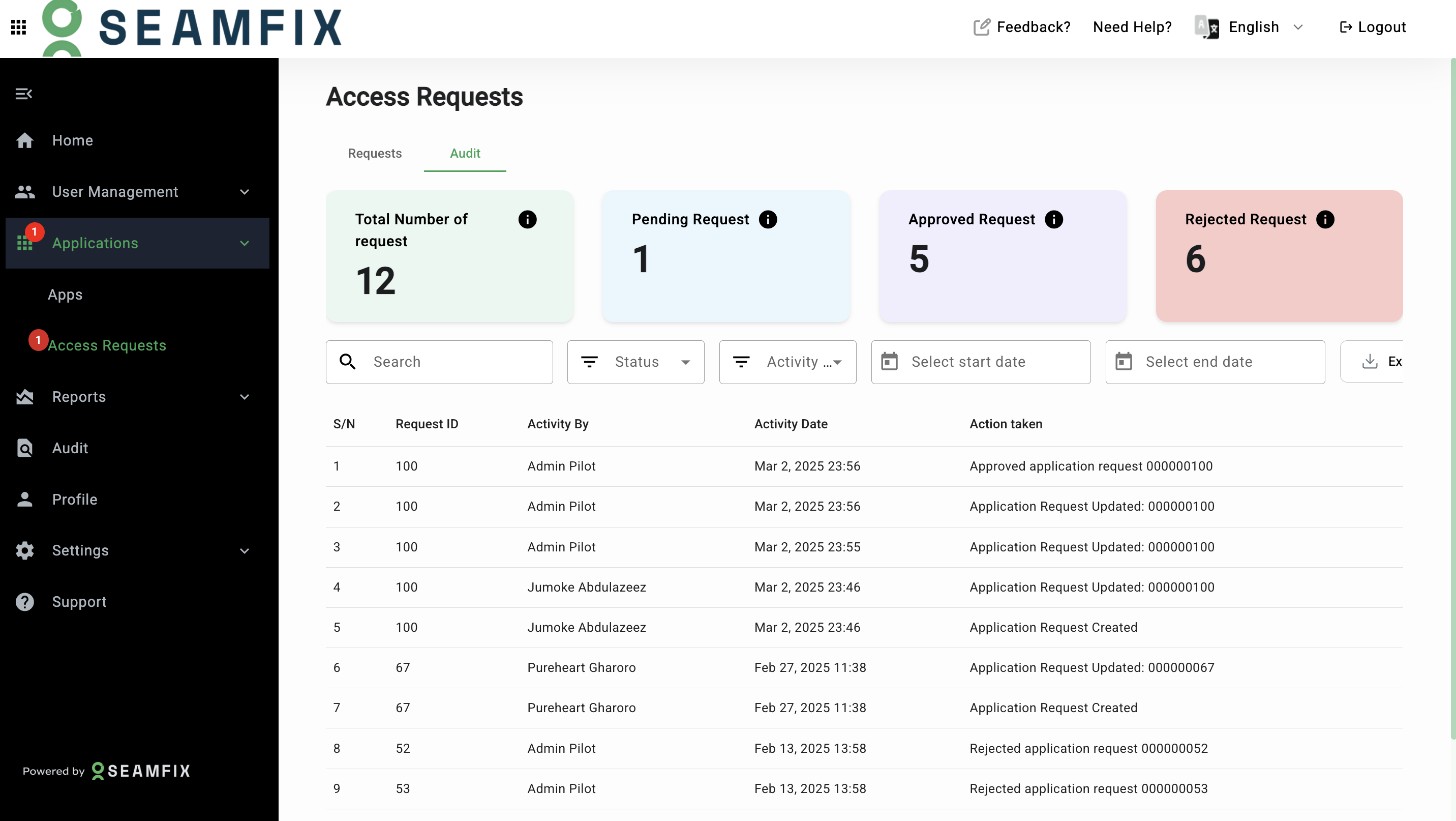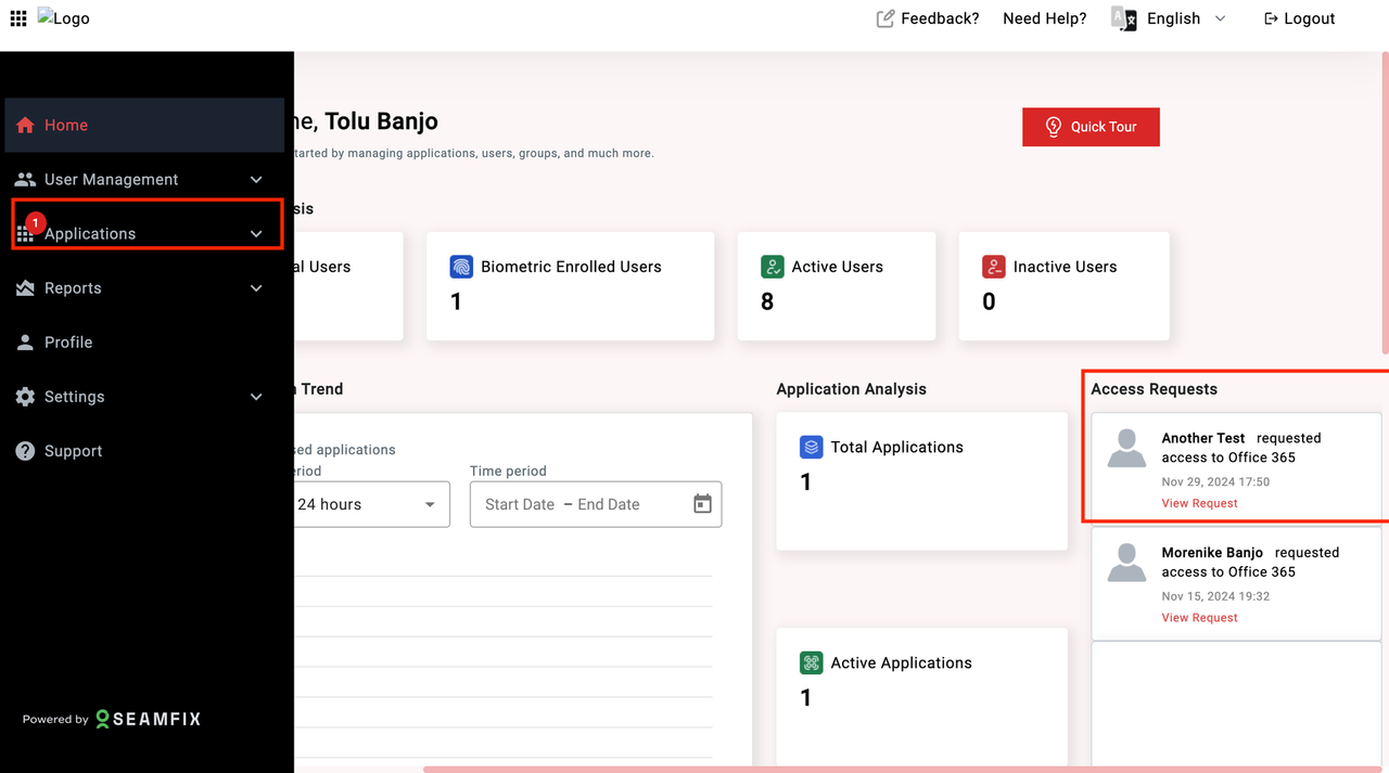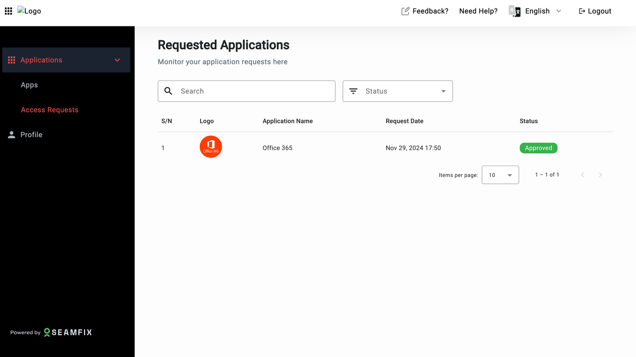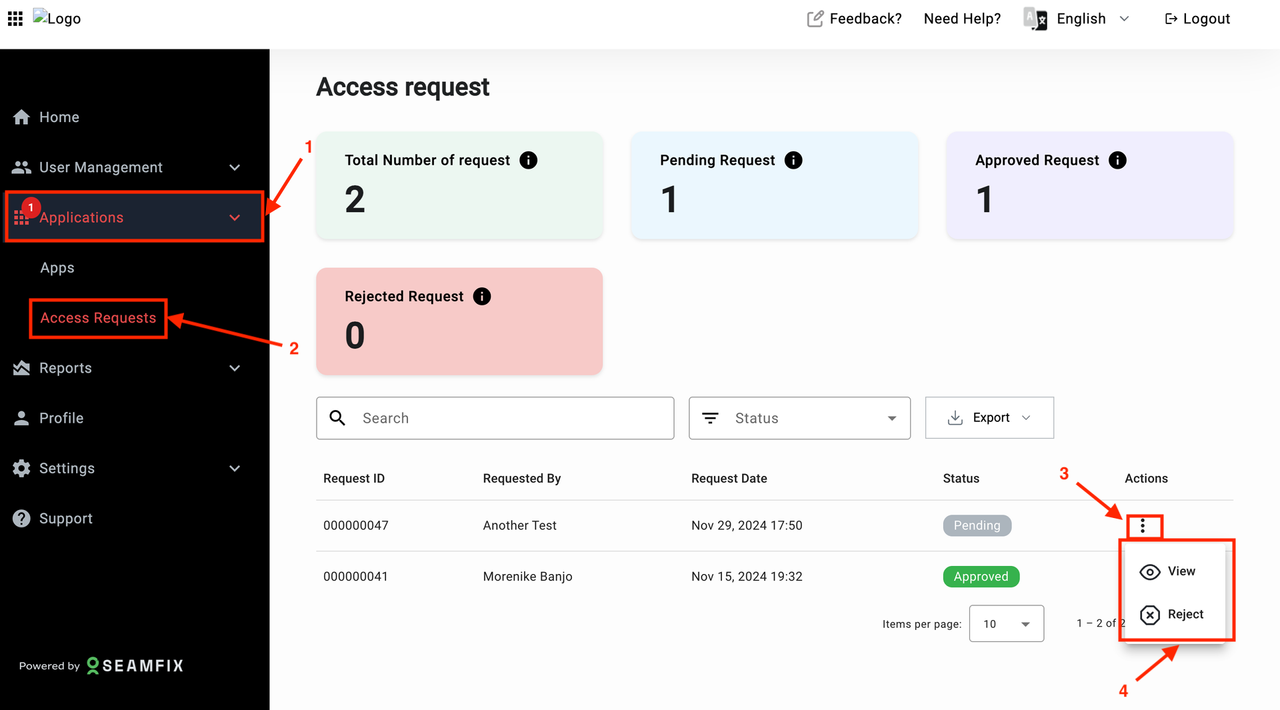 - As the approver, log in to the Fixiam portal and navigate to the Apps Requests section.