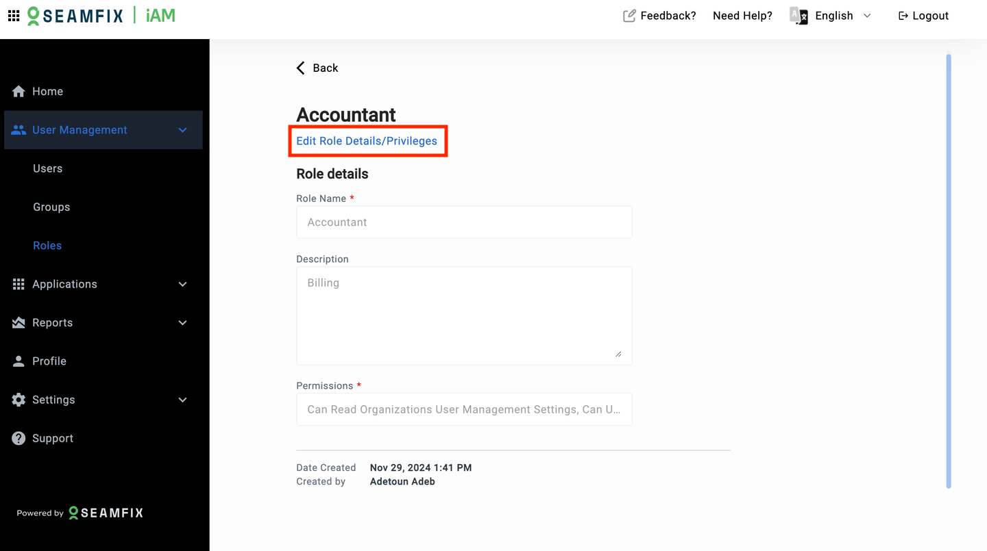 - Select the Role to Modify: From the list of existing roles, click on the Role Name you wish to modify.
