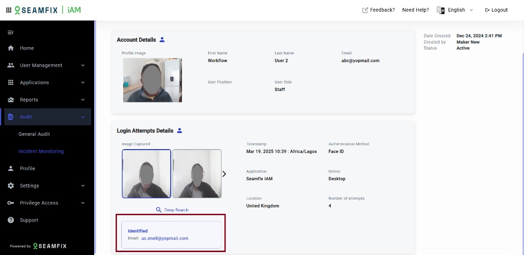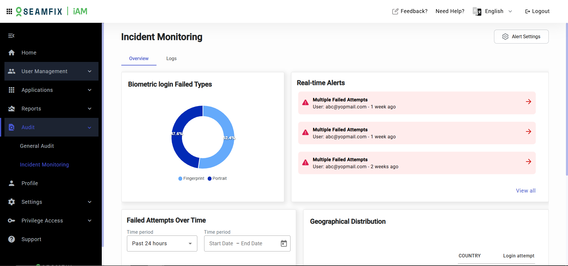 Incident Monitoring allows administrators to track and manage in real time. The tool monitors biometric access attempts as well as access from unusual locations, offering insights into system vulnerabilities and potential attack vectors.