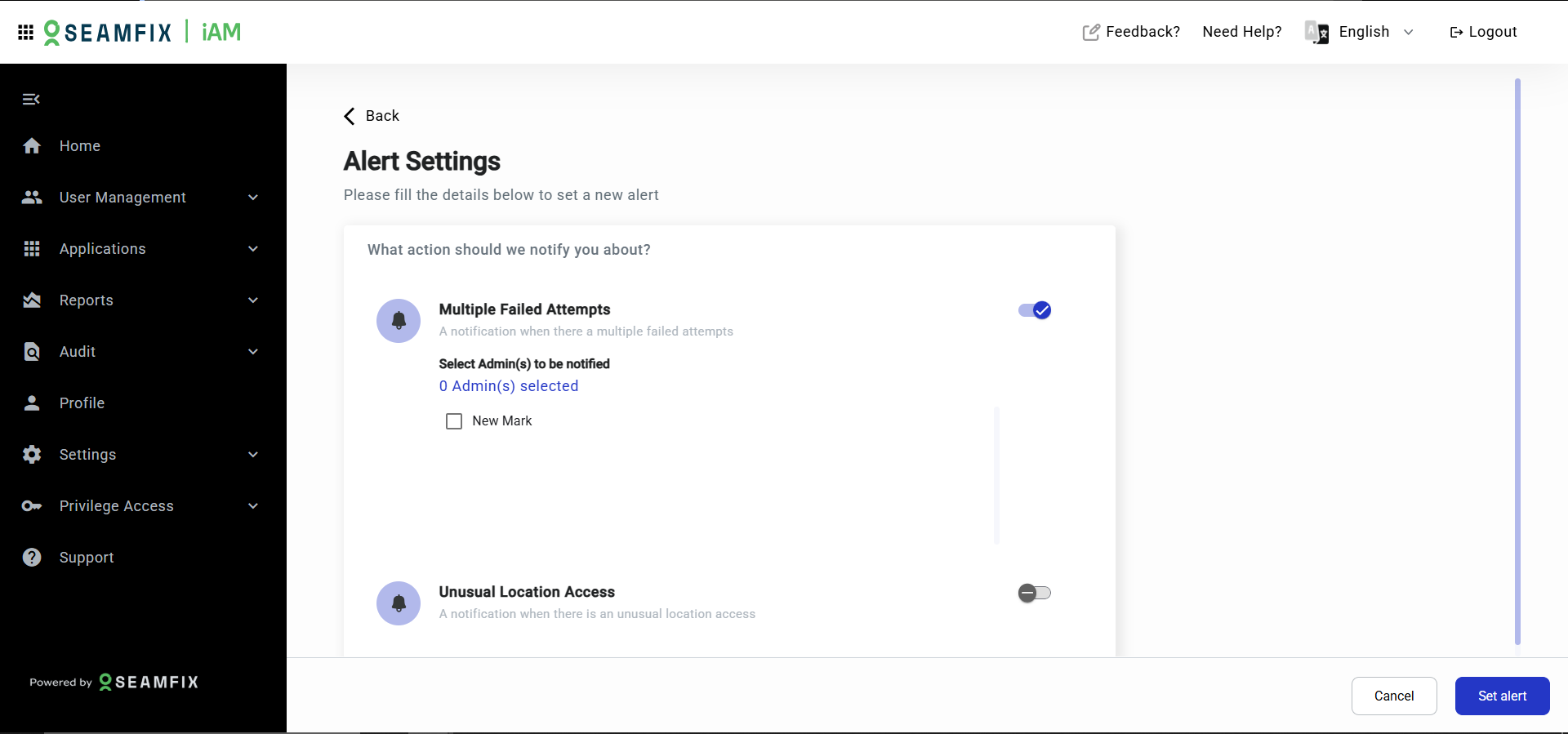 - The events monitored are failed login using biometrics and login from unusual location