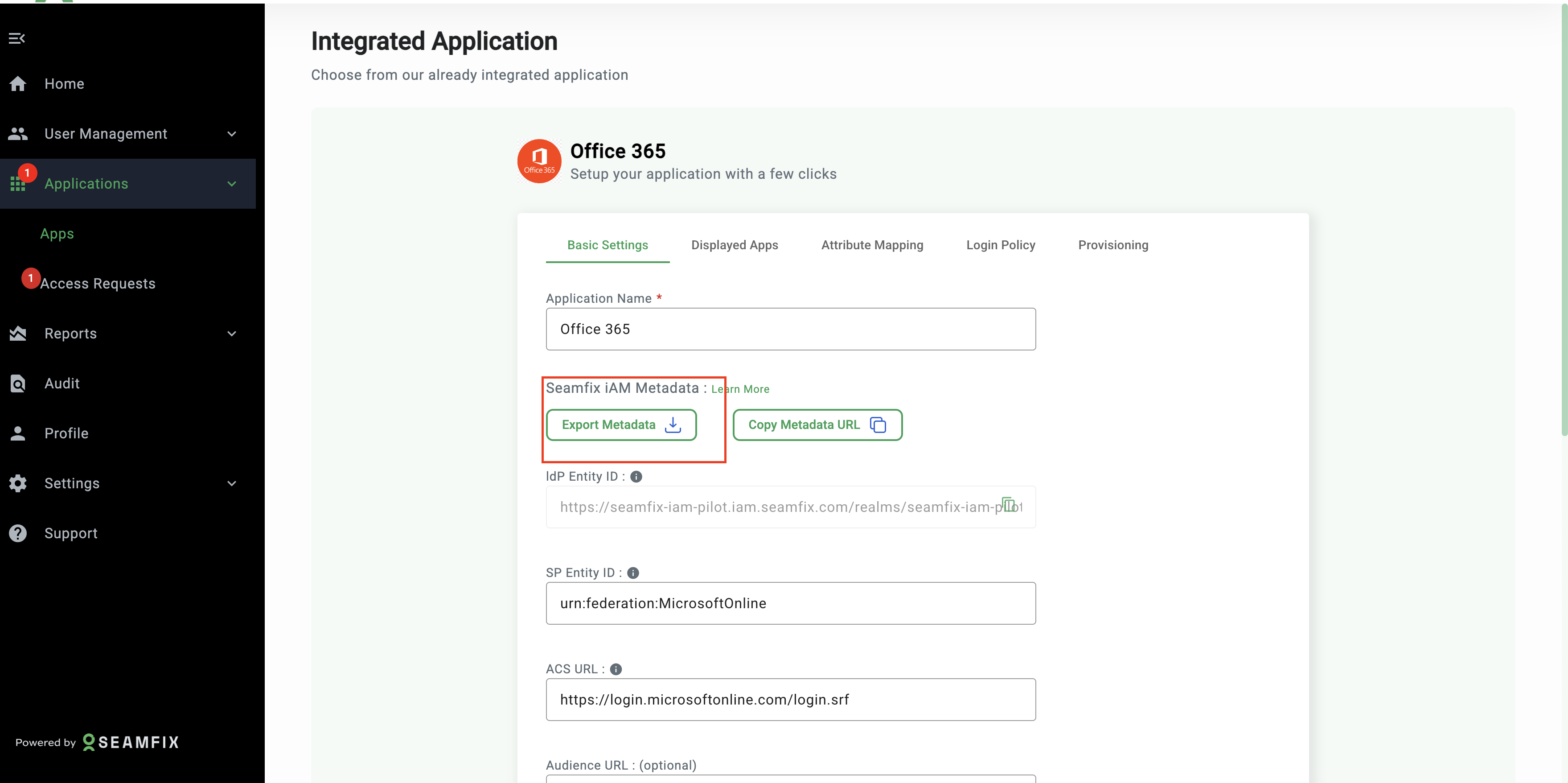 - Fill the following fields using Microsoft details (if not already set) SP Entity ID: our Microsoft Entity ID (from admin portal) ACS URL: Your Microsoft ACS URL (from admin portal) Audience URL(Optional) : Reuse SP Entity ID or leave blank Sign Assertion ✅ Enabled