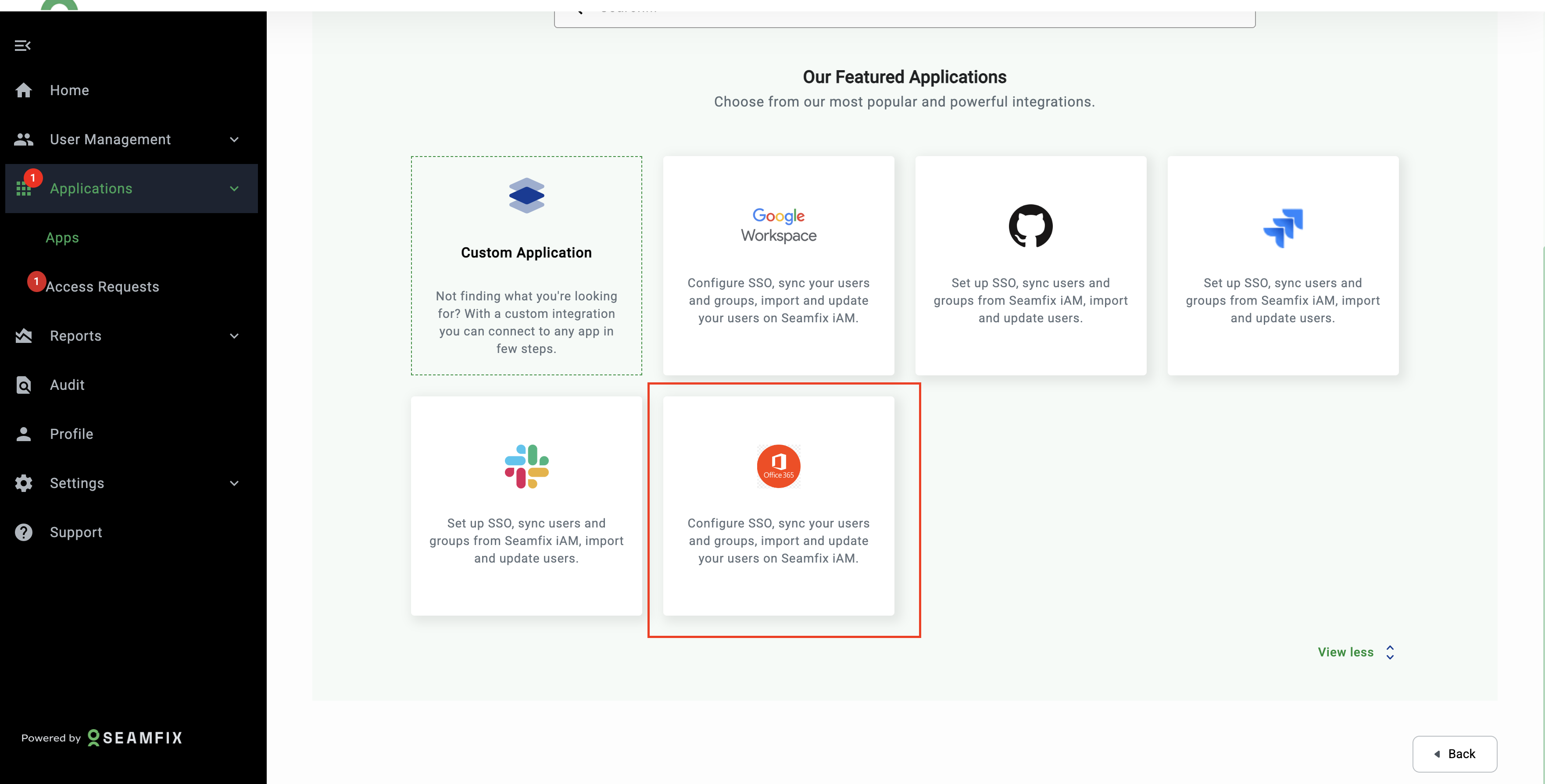 - Select Office 365 from the list of Applications