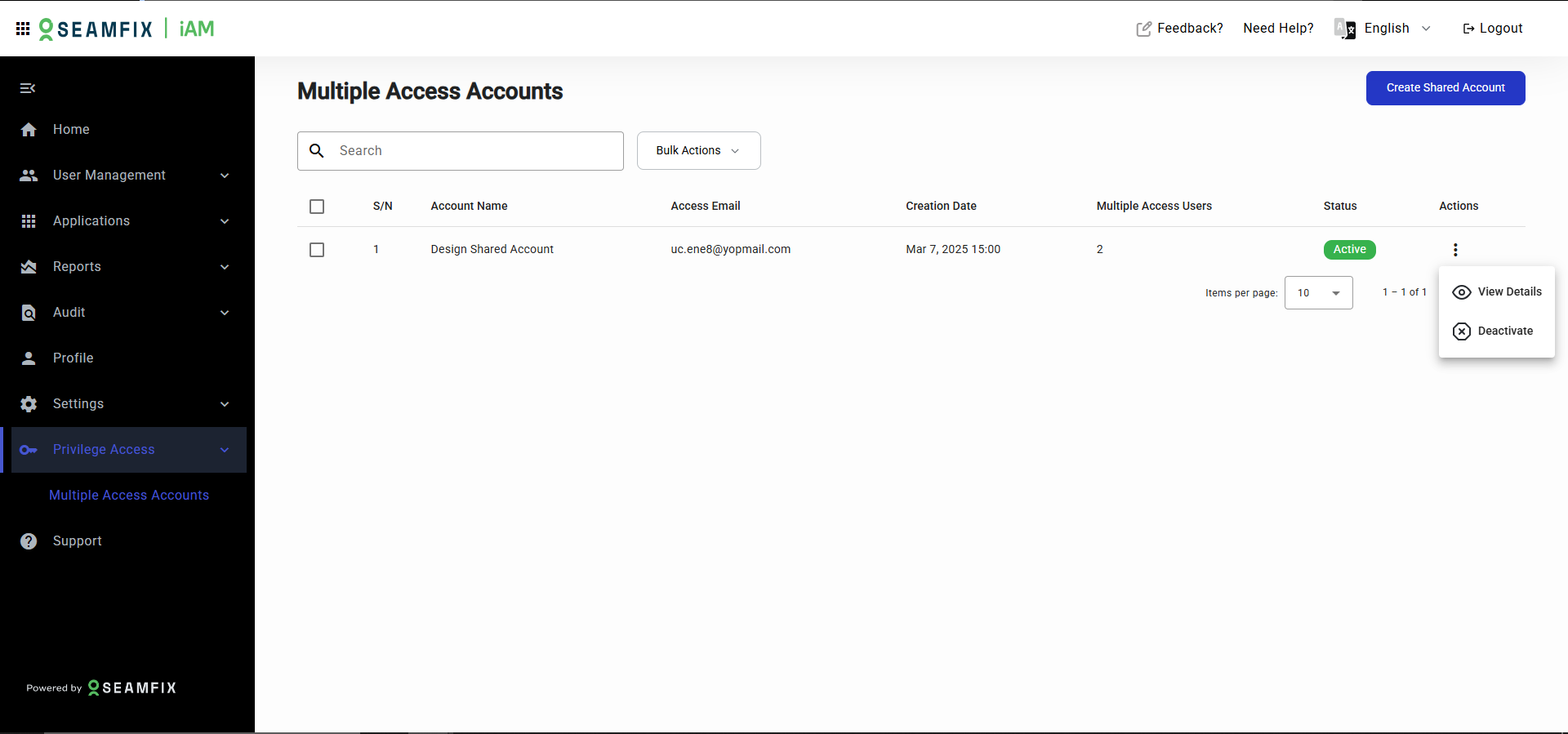 - To remove a user’s access, click on the Edit Multiple Access Account option upon viewing the details of the account