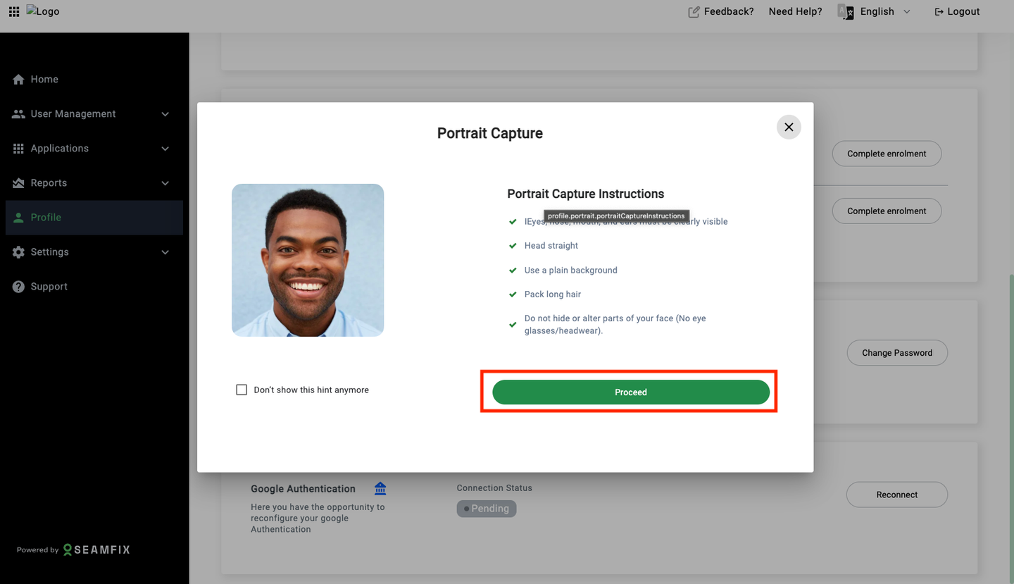 - Capture Process: Follow the on-screen instructions to align face within the frame.