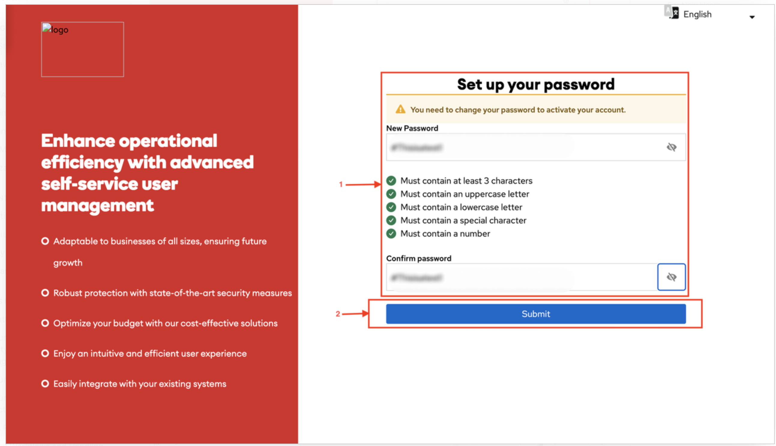 Create a new, secure password following the specified guidelines (e.g., minimum length, use of numbers and special characters).