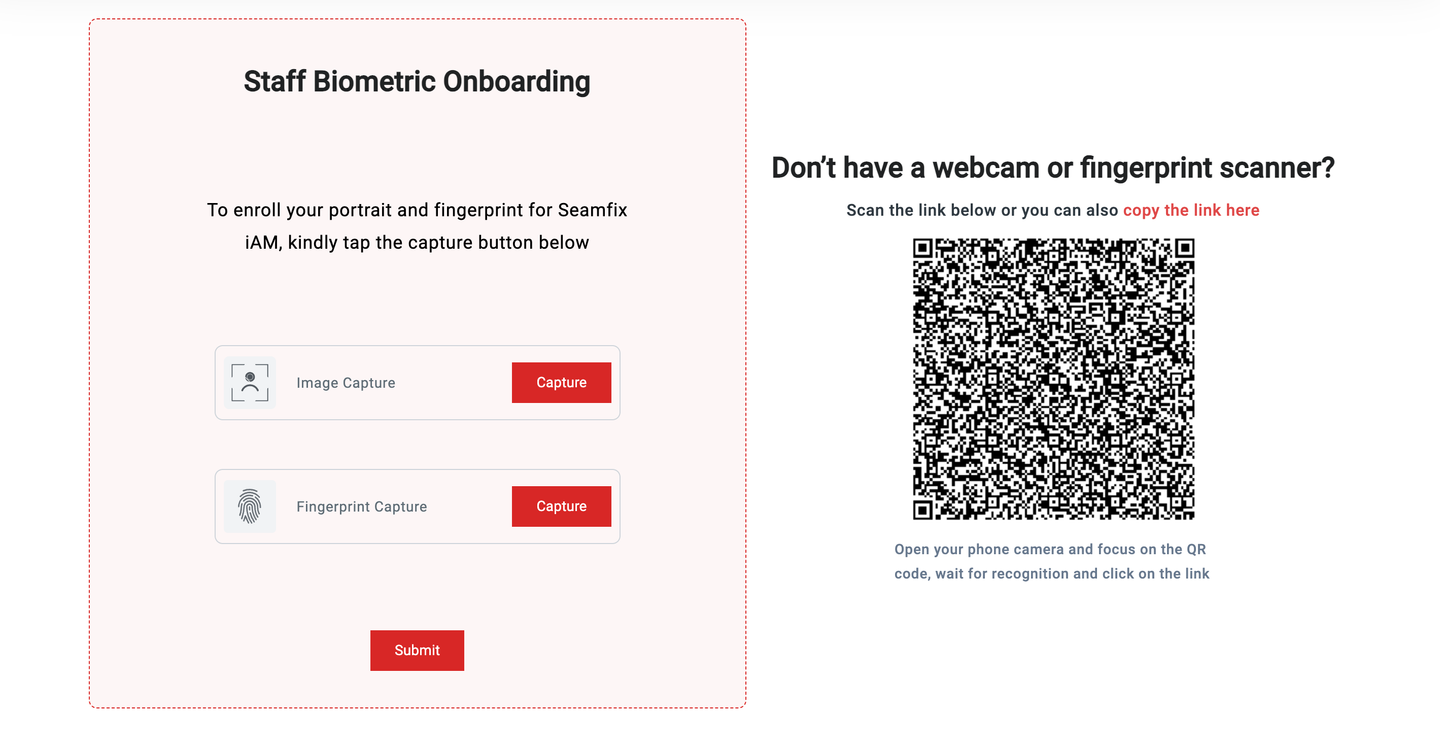 - Access the Biometric Enrollment Page: After setting up Google Authenticator, users will be directed to enroll their biometric data.