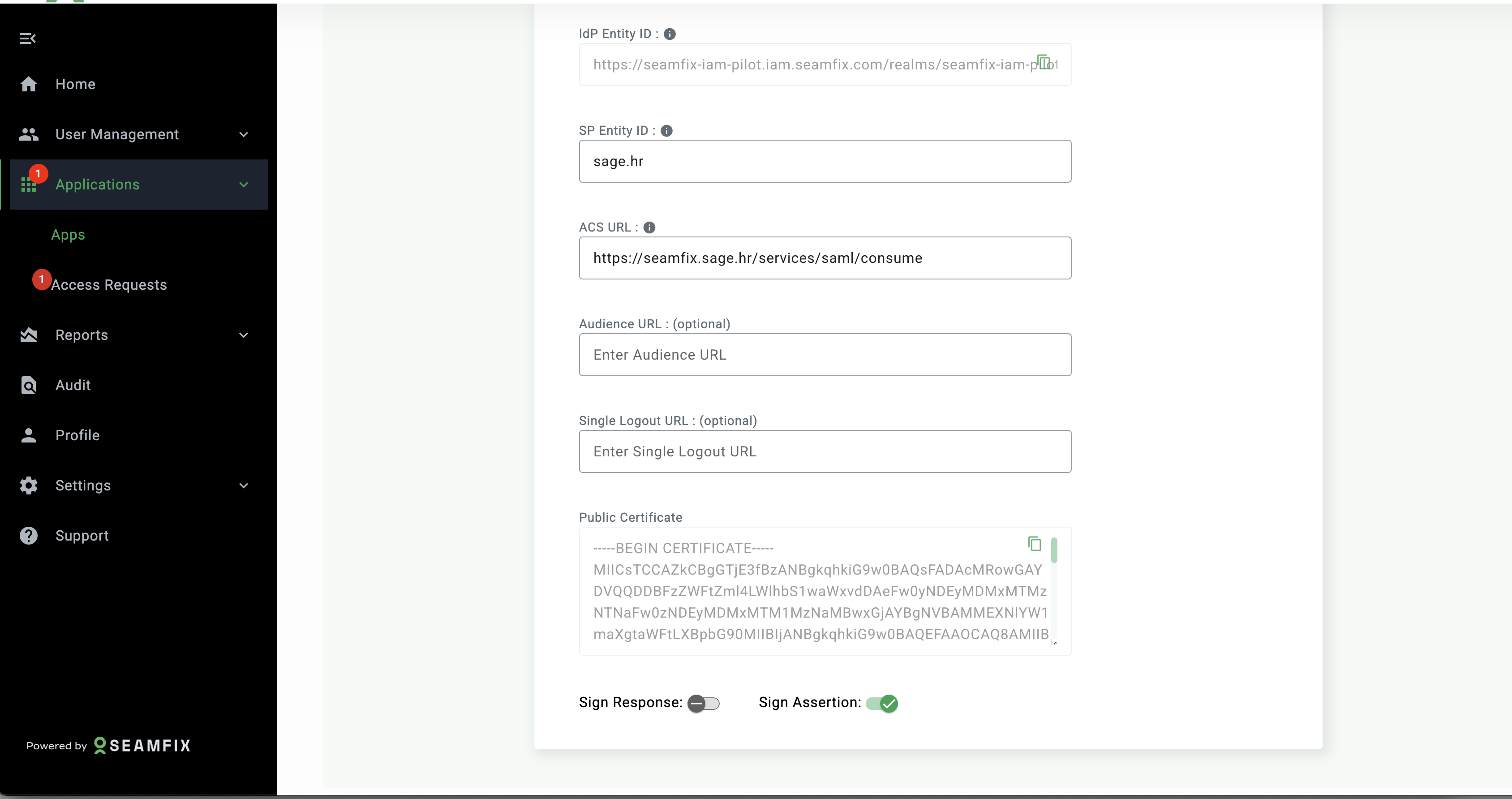 - SP Entity ID: Enter sage.hr
