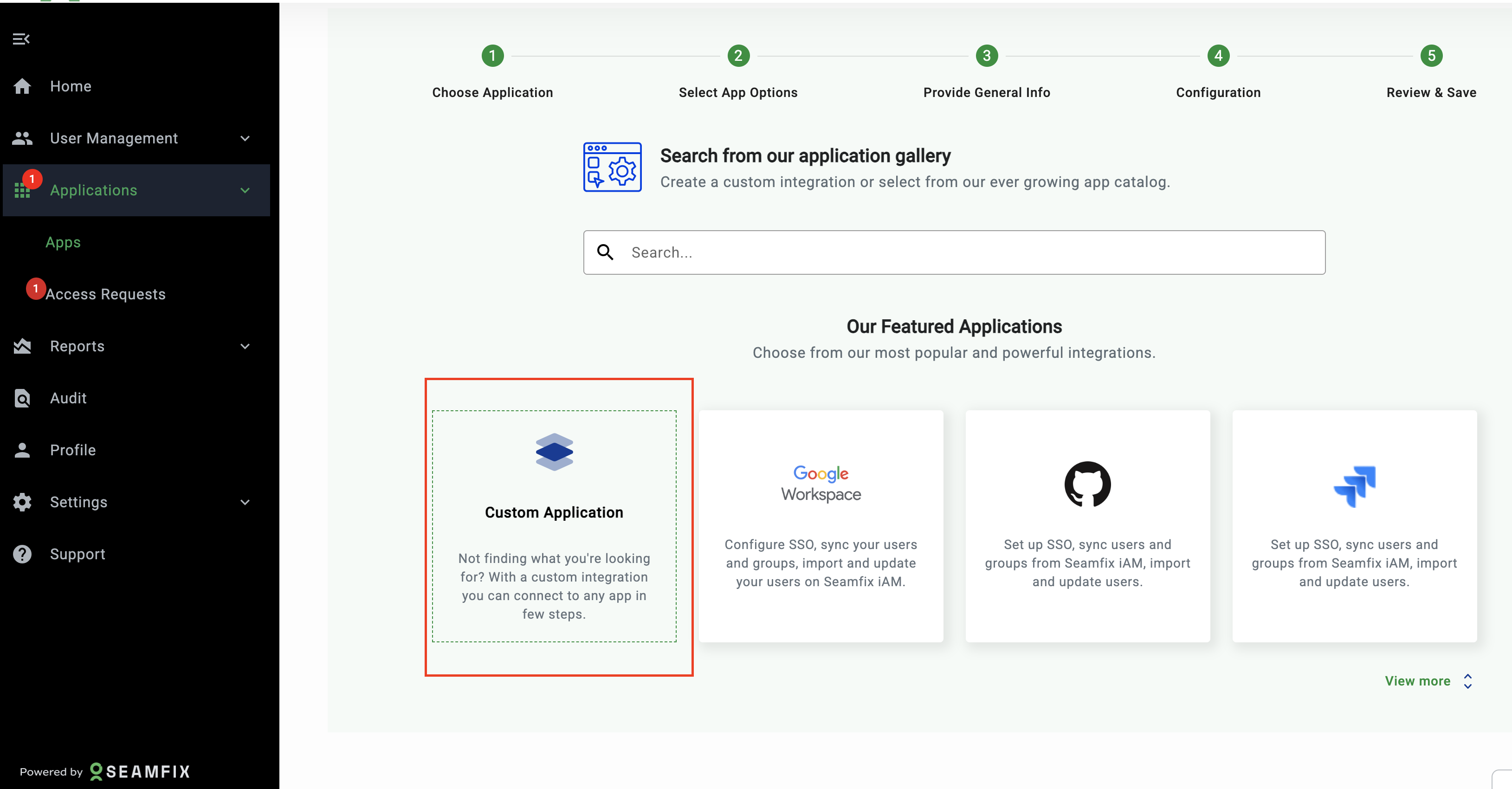 - Choose Custom Application.