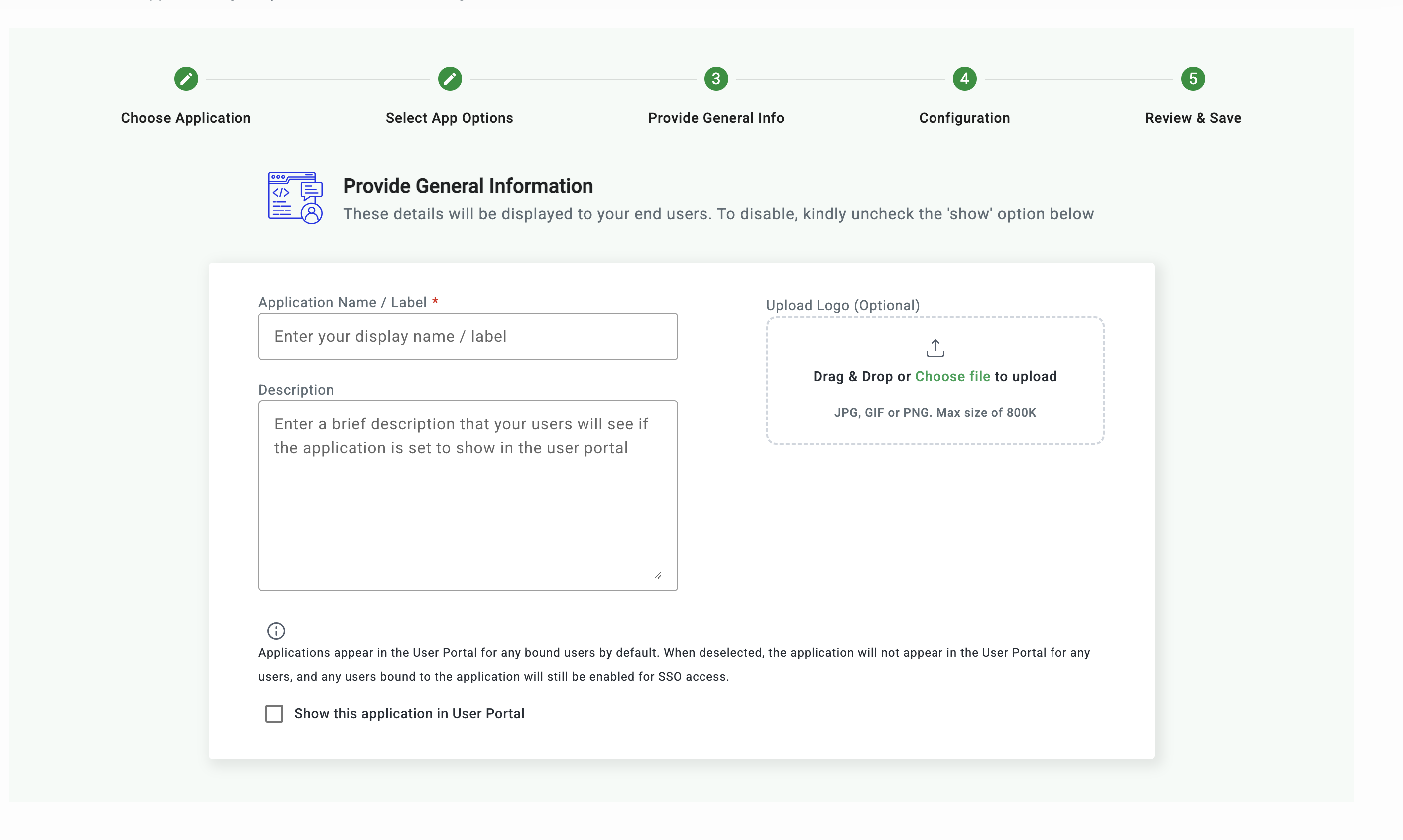 - Show in User Portal (Optional)