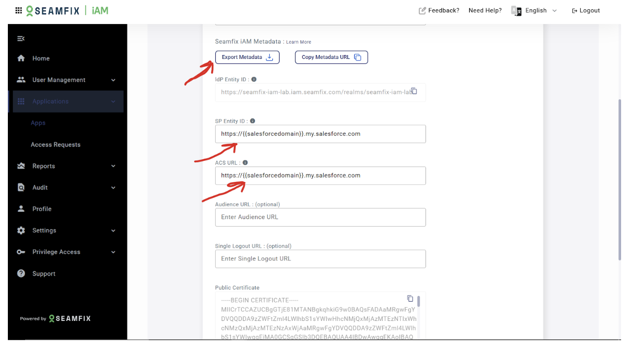 This setup involves configuration on both Salesforce and Fixiam. Since Salesforce is a pre-integrated application in Fixiam, the process is streamlined—just plug in your domain and export metadata.