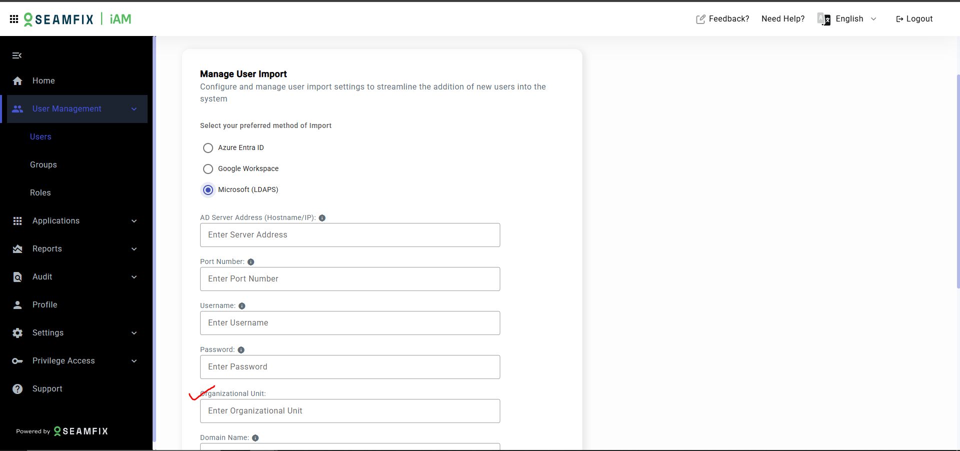 NB: Users can also be imported from different/specific organizational units