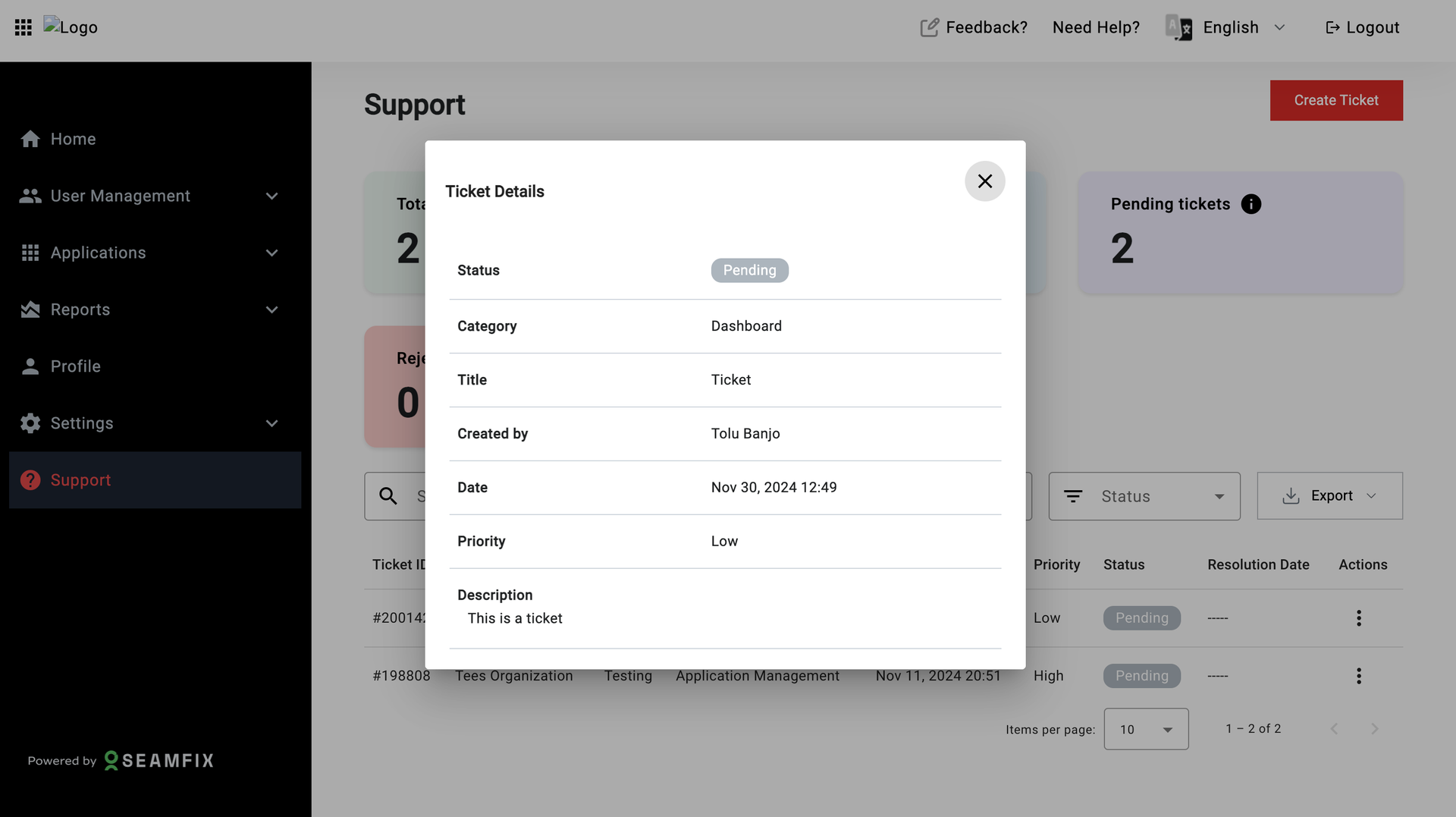 - Click on the ticket to view additional details, updates, and responses from the support team